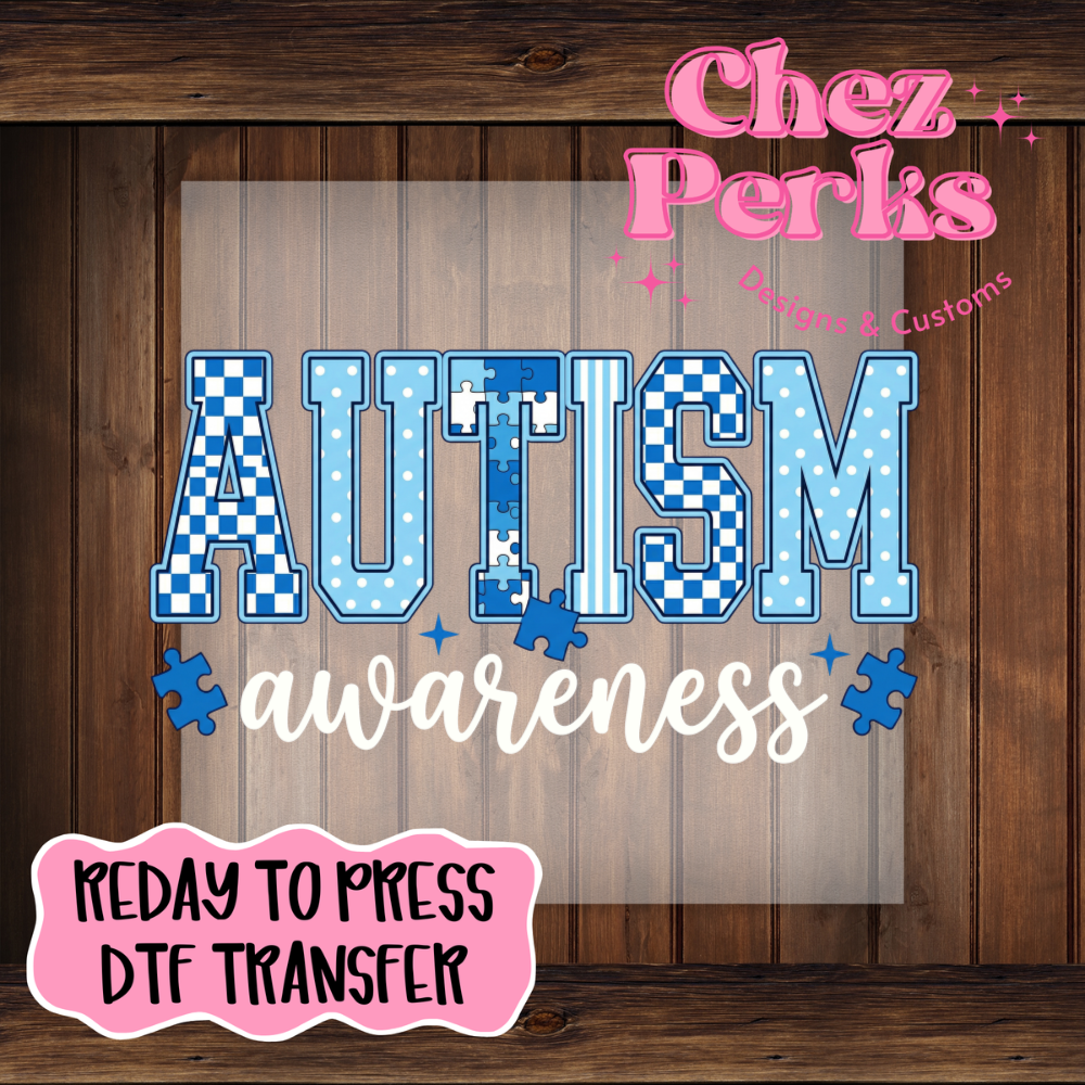 Autism Awareness White Text DTF TRANSFER