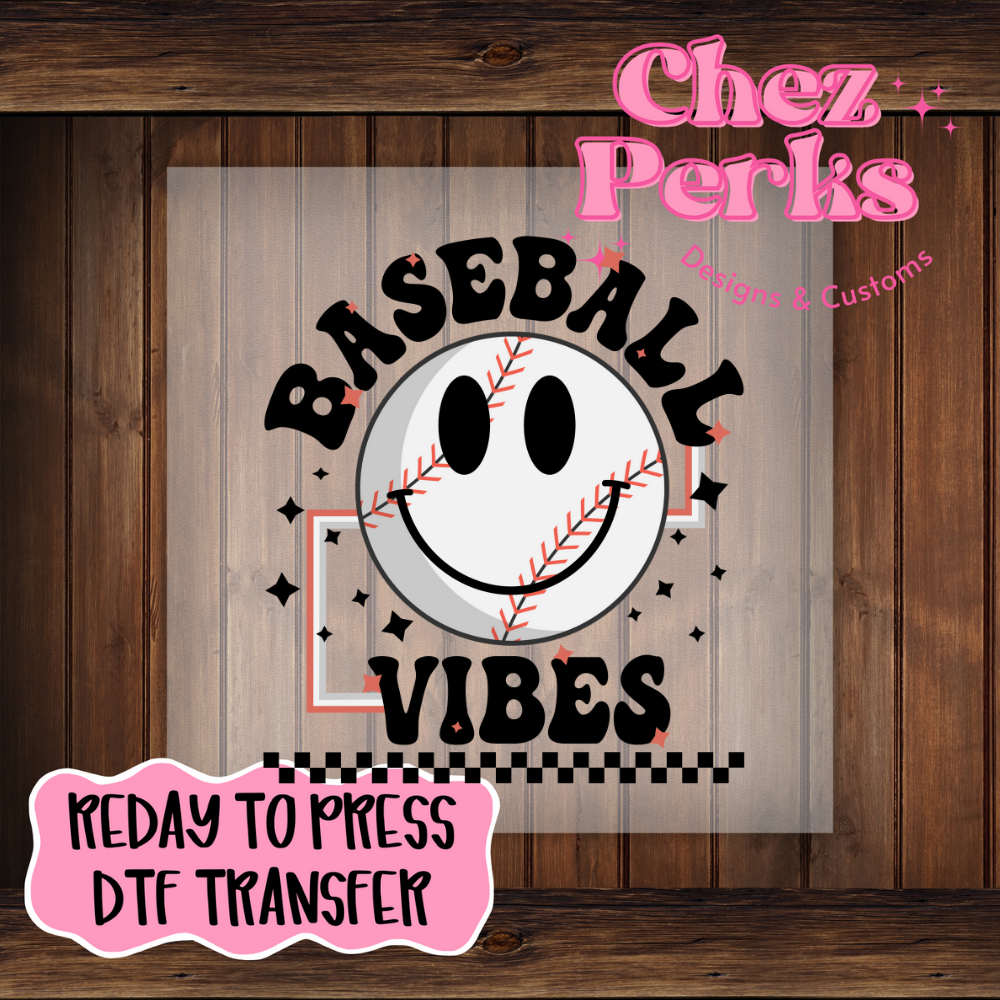 Baseball Vibes Smiley DTF TRANSFER