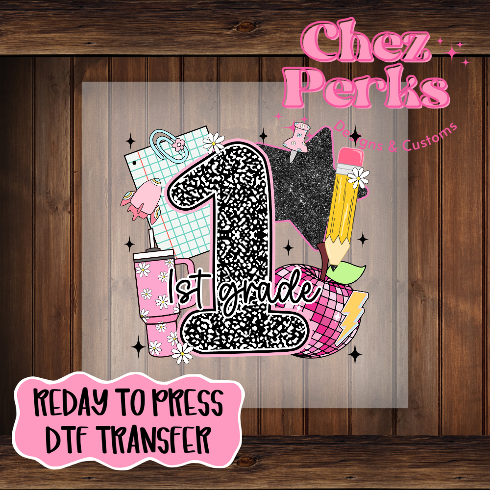Black Pink First Grade Collage DTF TRANSFER