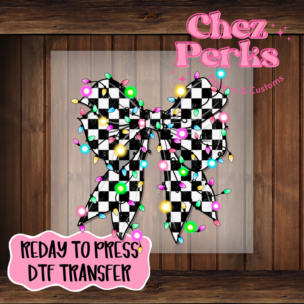 Checker Christmas Light Bow DTF TRANSFER