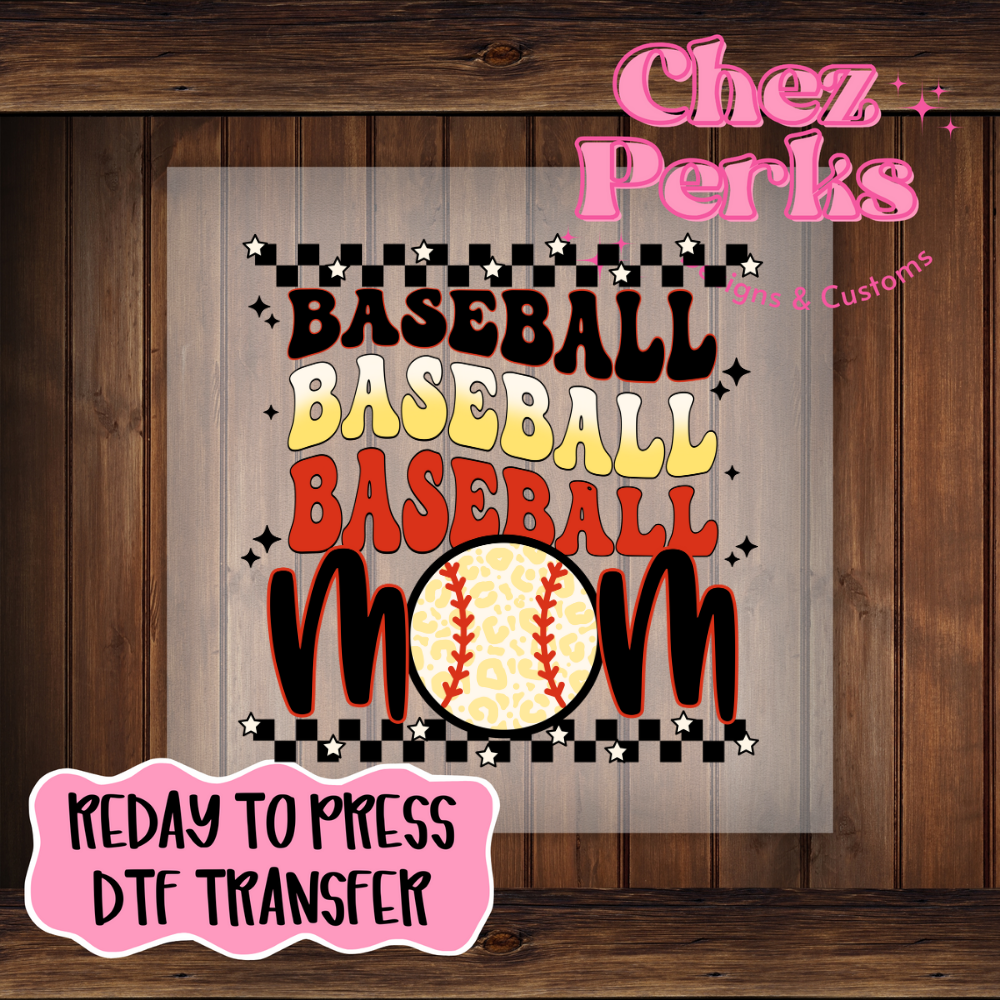 Checkered Baseball Baseball Mom DTF TRANSFER