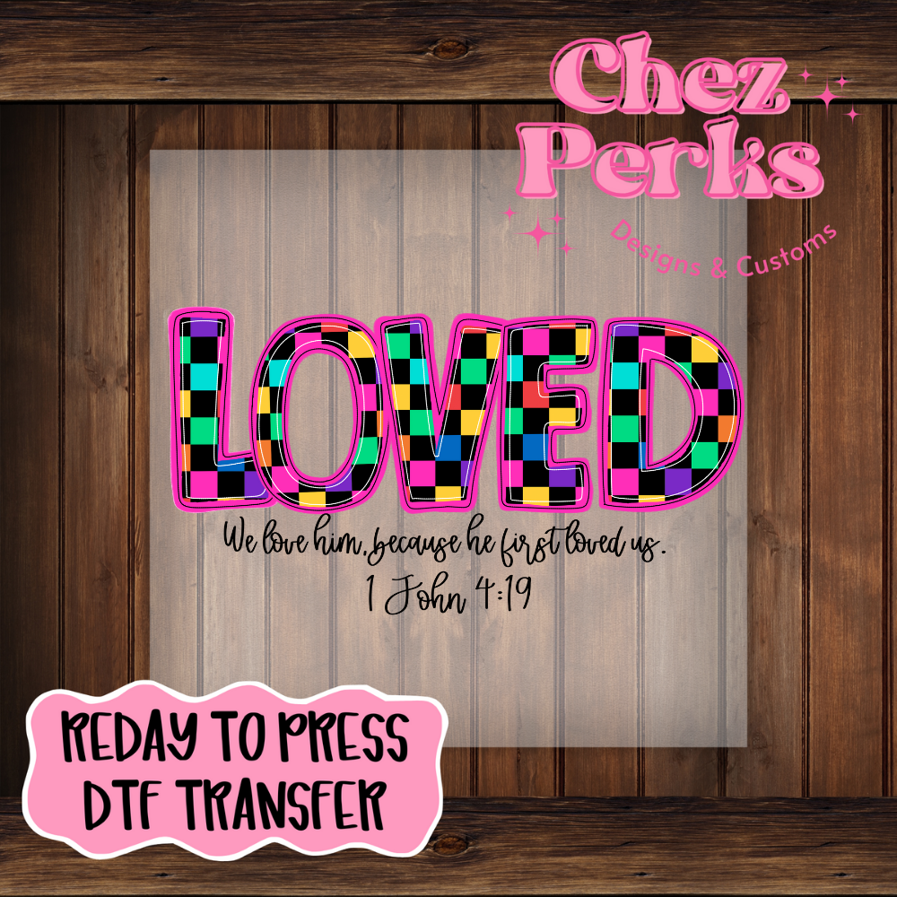 Checkered Love 1 John 4:19 DTF TRANSFER