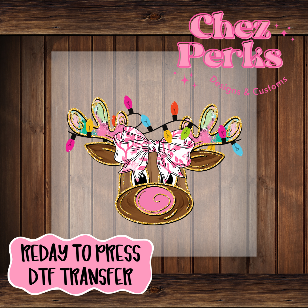 Christmas Lights Reindeer DTF TRANSFER
