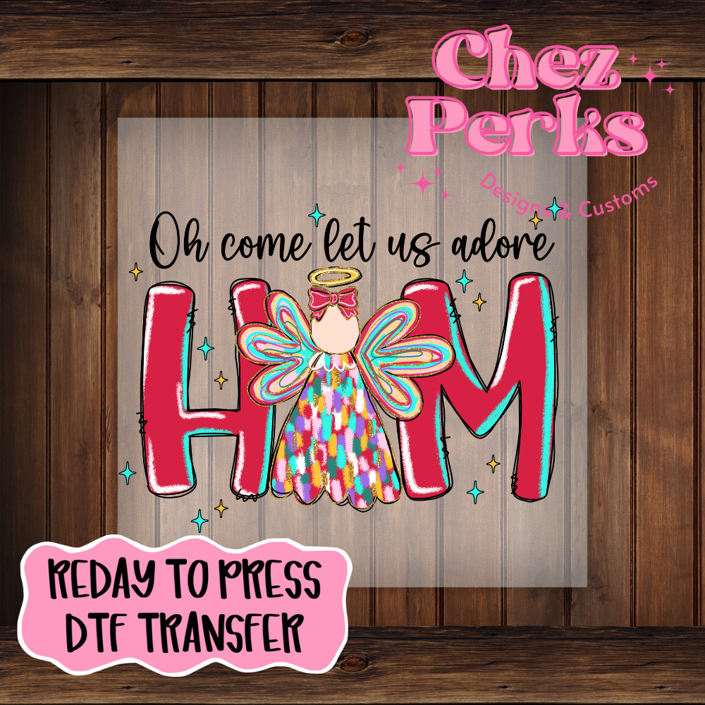Come Let Us Adore Him Splattered Angel DTF TRANSFER