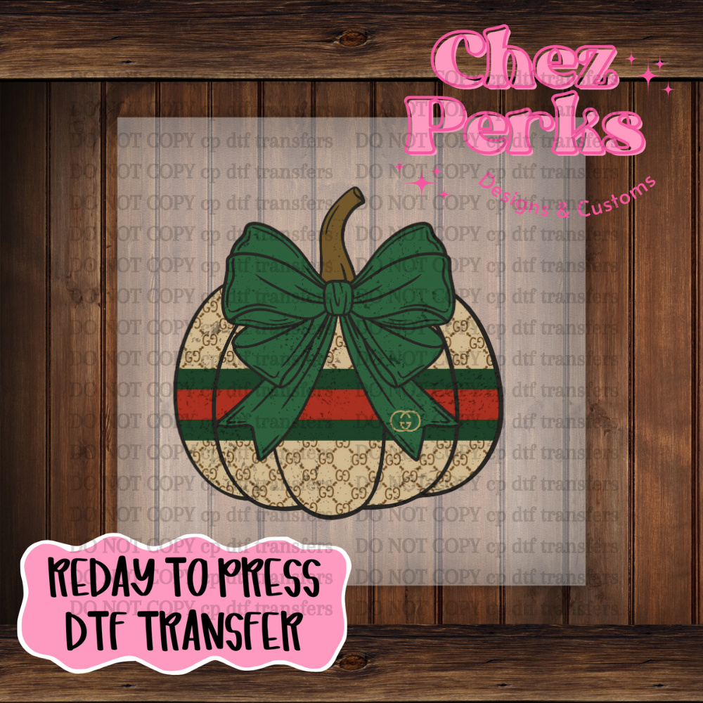 Designer Pumpkin Green Bow DTF TRANSFER