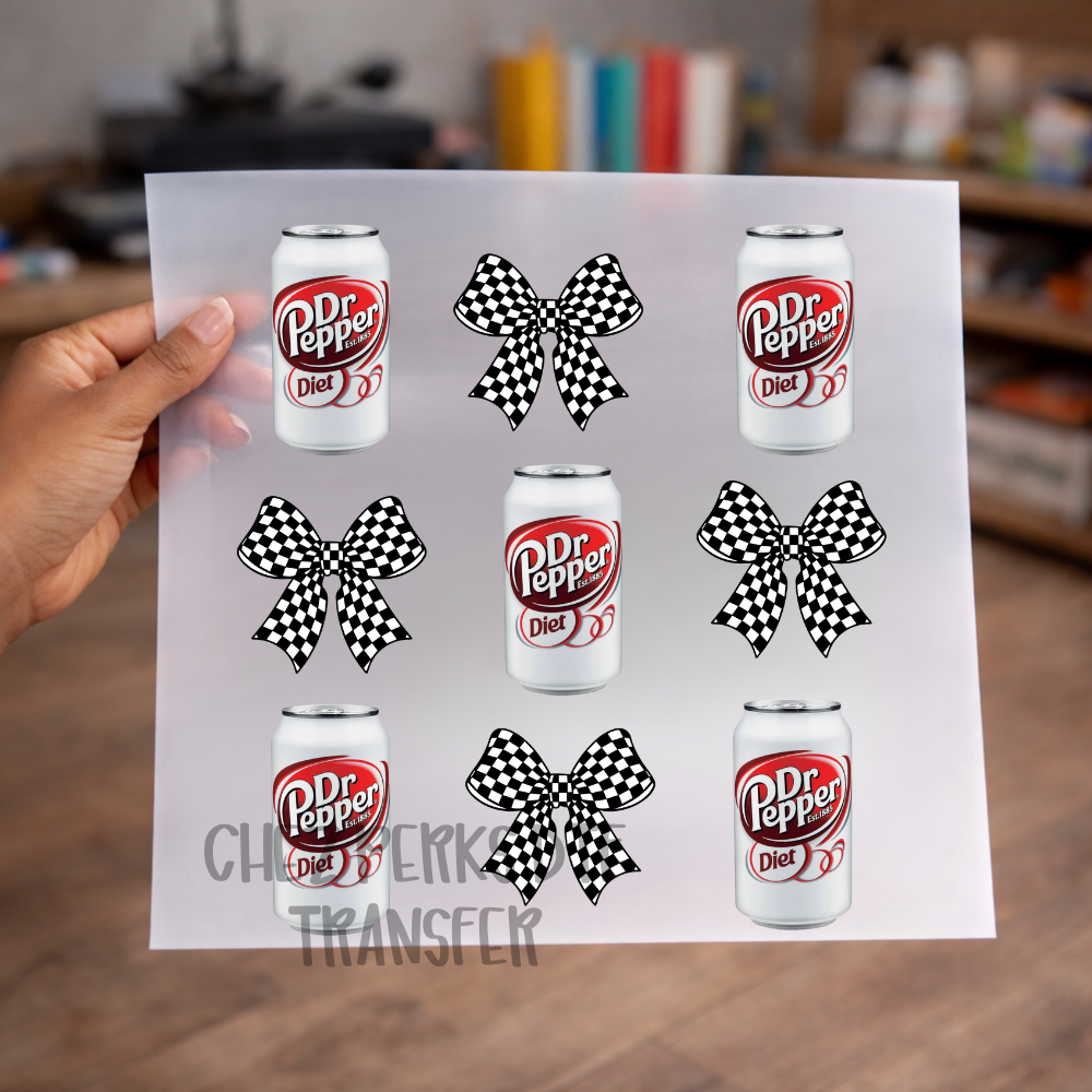 Diet Dr. Pepper Checker Bows DTF TRANSFER