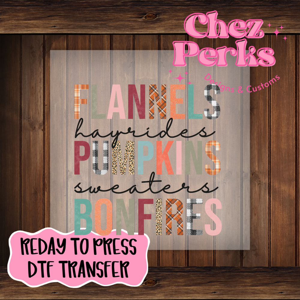 Flannels Hayrides Pumpkins Sweaters DTF TRANSFER