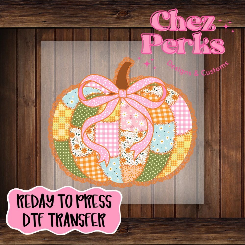 Floral Patch Pumpkin Pink Bow DTF TRANSFER