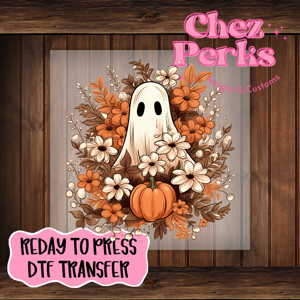 Floral Pumpkin Ghost DTF TRANSFER