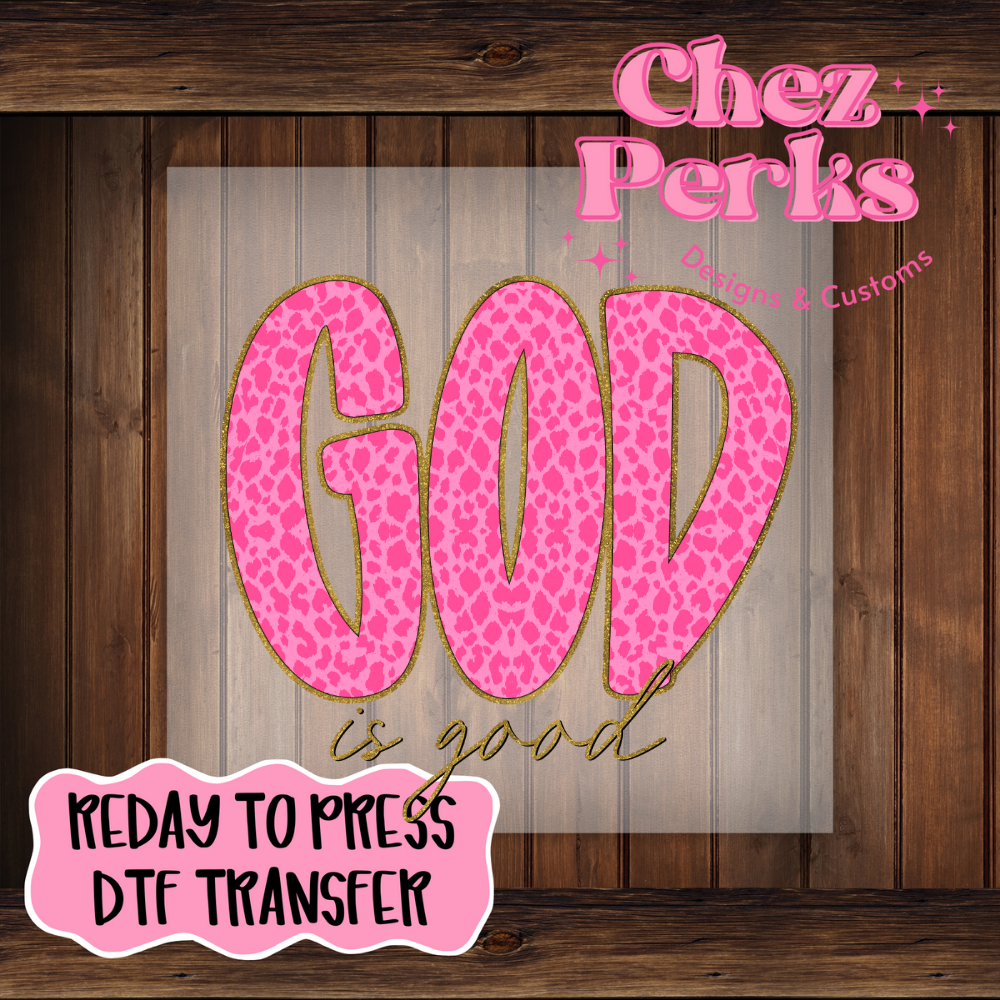 God Is Good Pink Leopard DTF TRANSFER