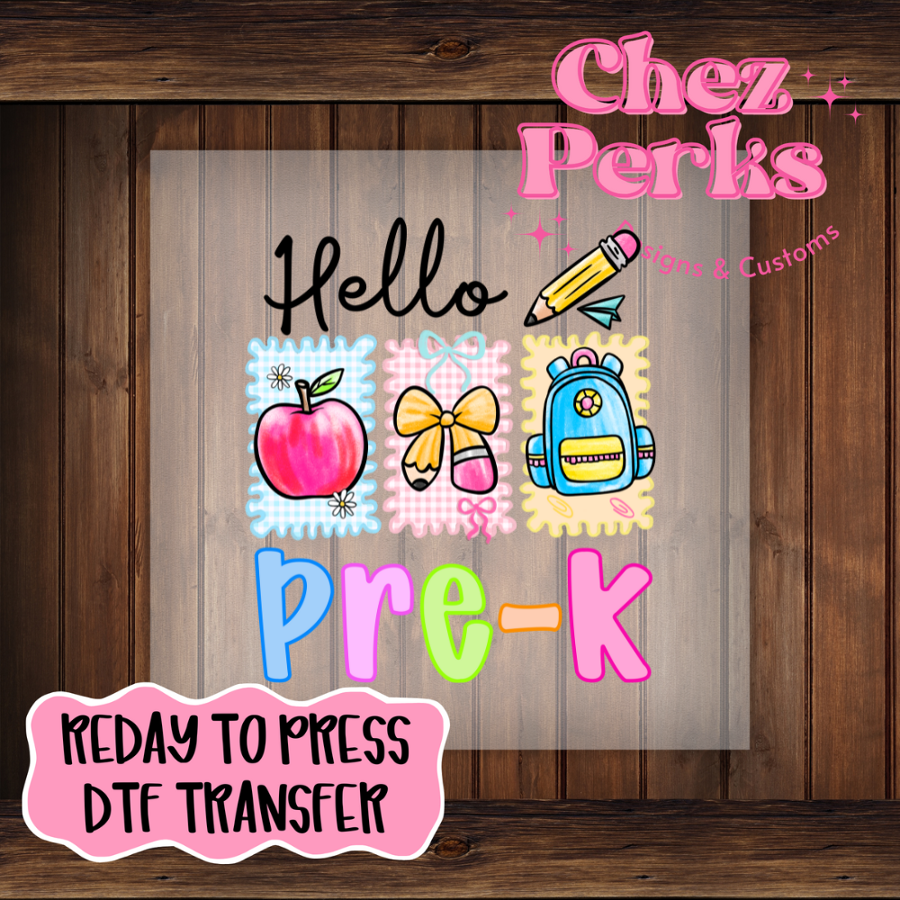 Hello Pre-K Grade Doodle Back-to-School DTF TRANSFER