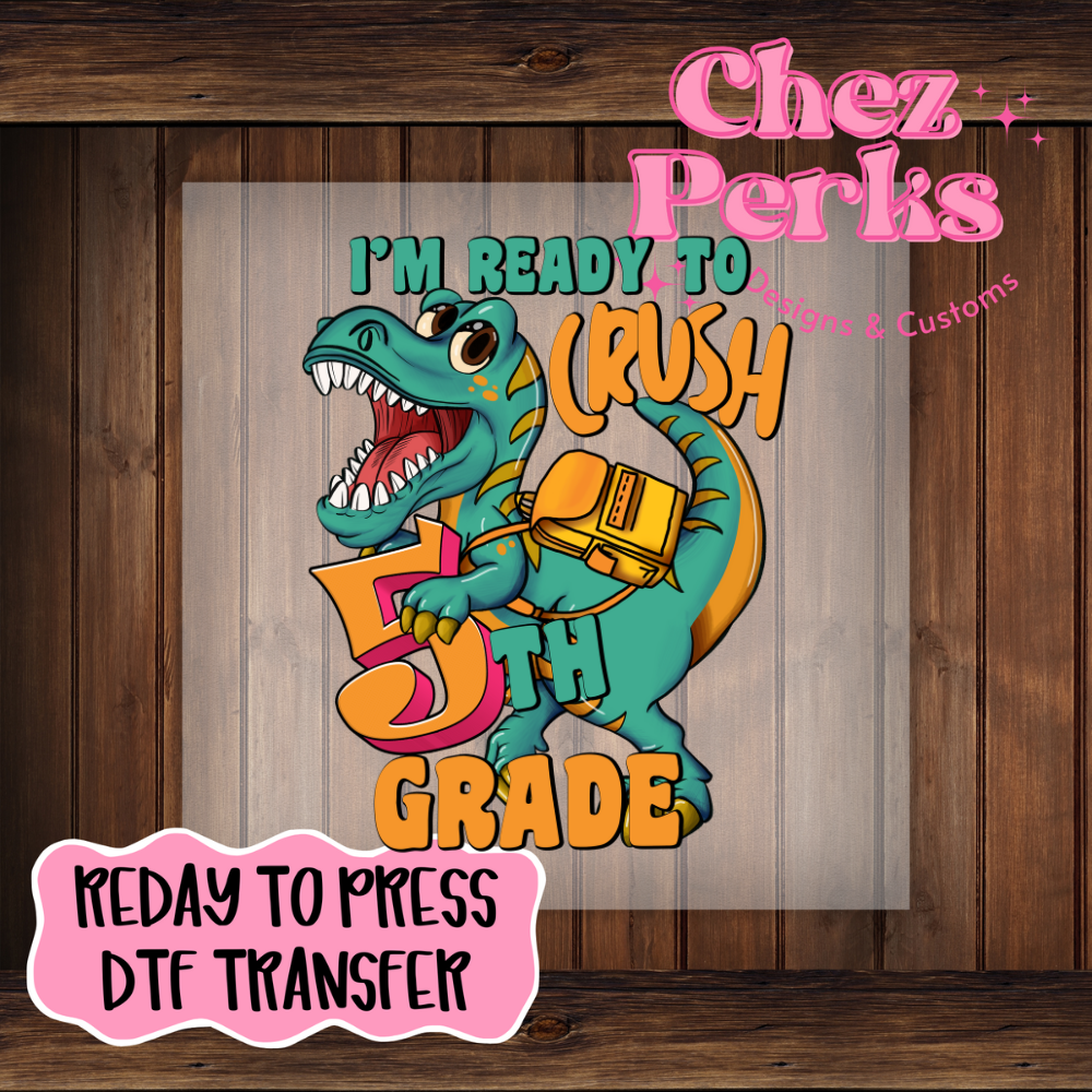 I’m Ready To Crush Fifth Grade Dino DTF TRANSFER