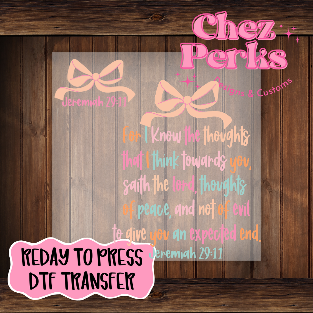 Jerimiah 29:11 Bow With Pocket DTF TRANSFER