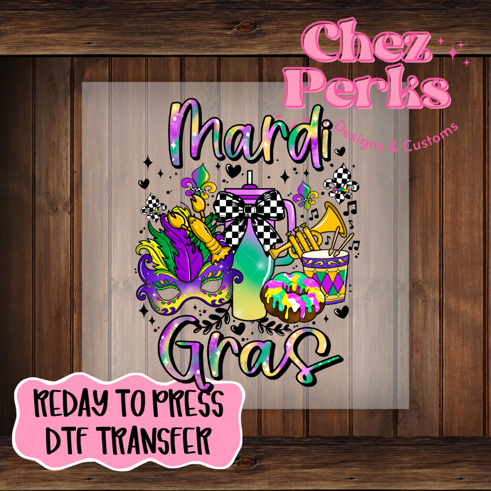 Mardi Gras Collage Checker Tumbler DTF TRANSFER