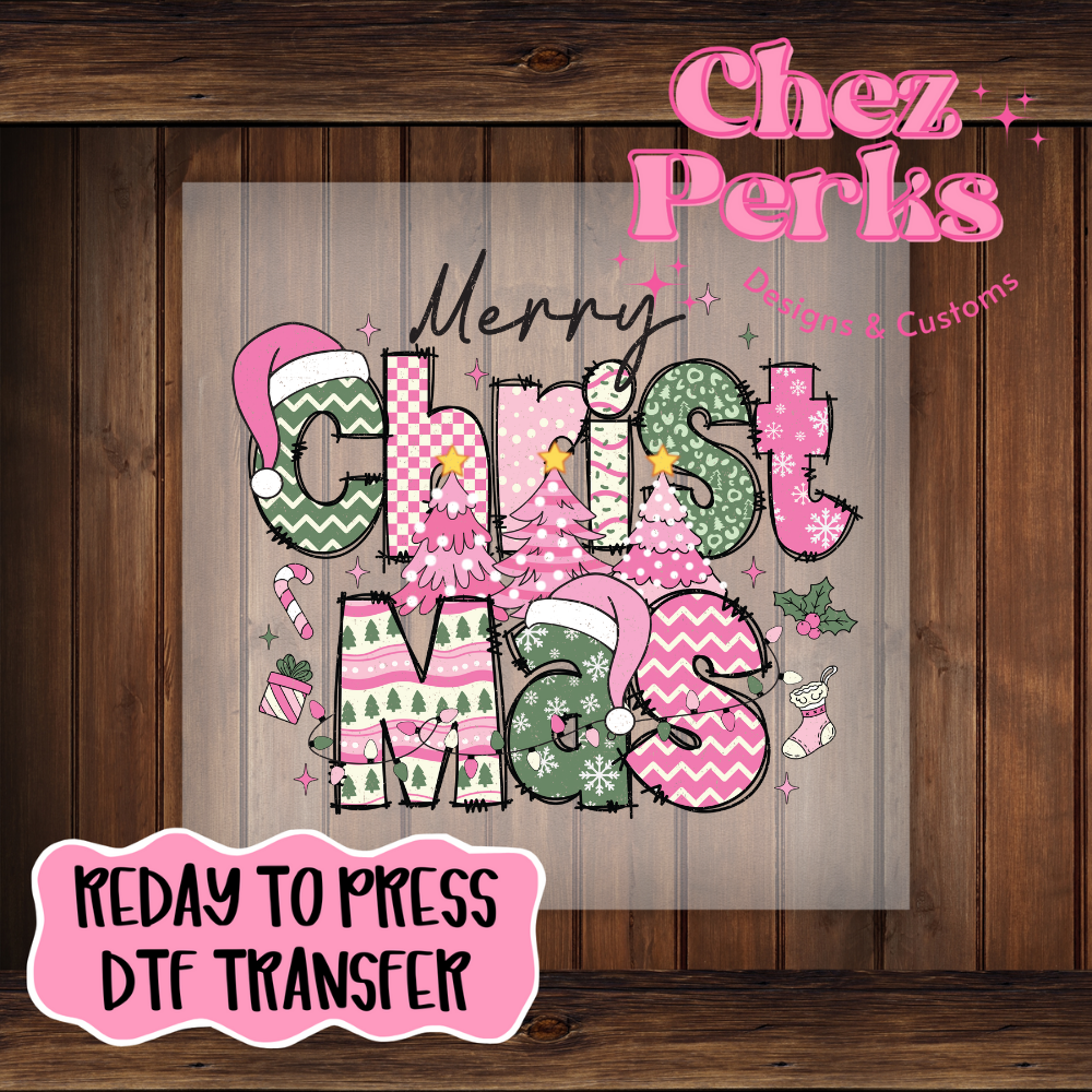Merry Christmas Pink Green DTF TRANSFER