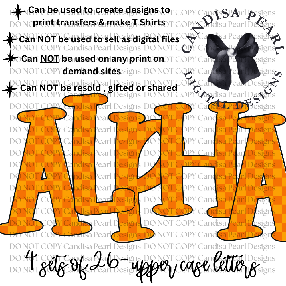 Orange Checker ALPHA SET PNG DIGITAL DOWNLOAD