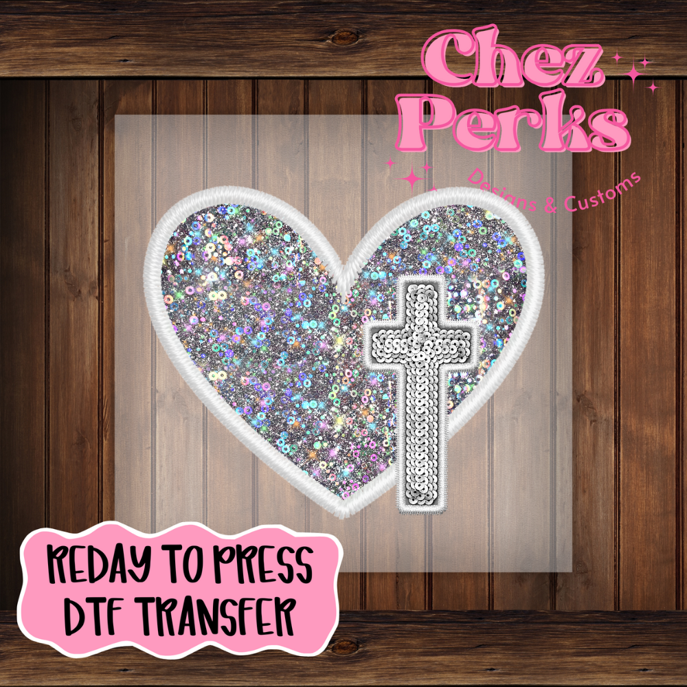 Pink Heart Cross DTF TRANSFER