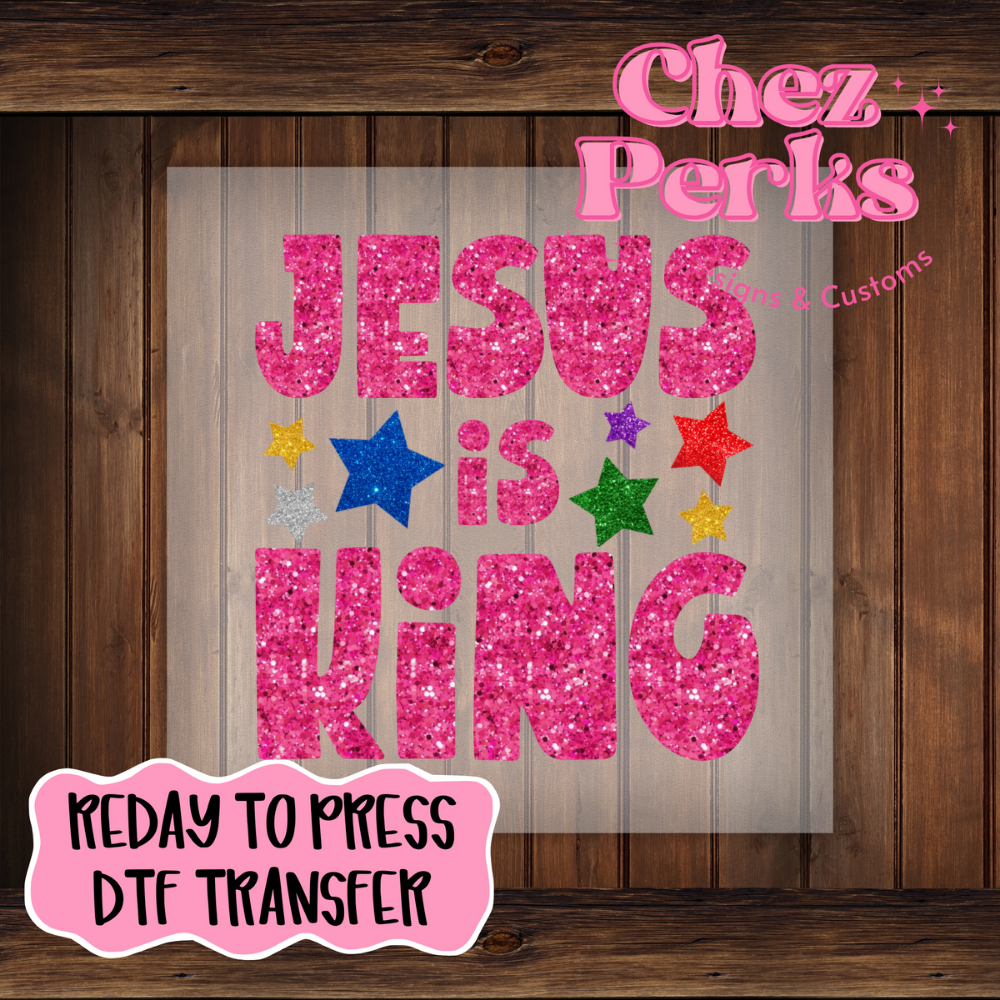 Pink Sparkle Jesus Is King DTF TRANSFER