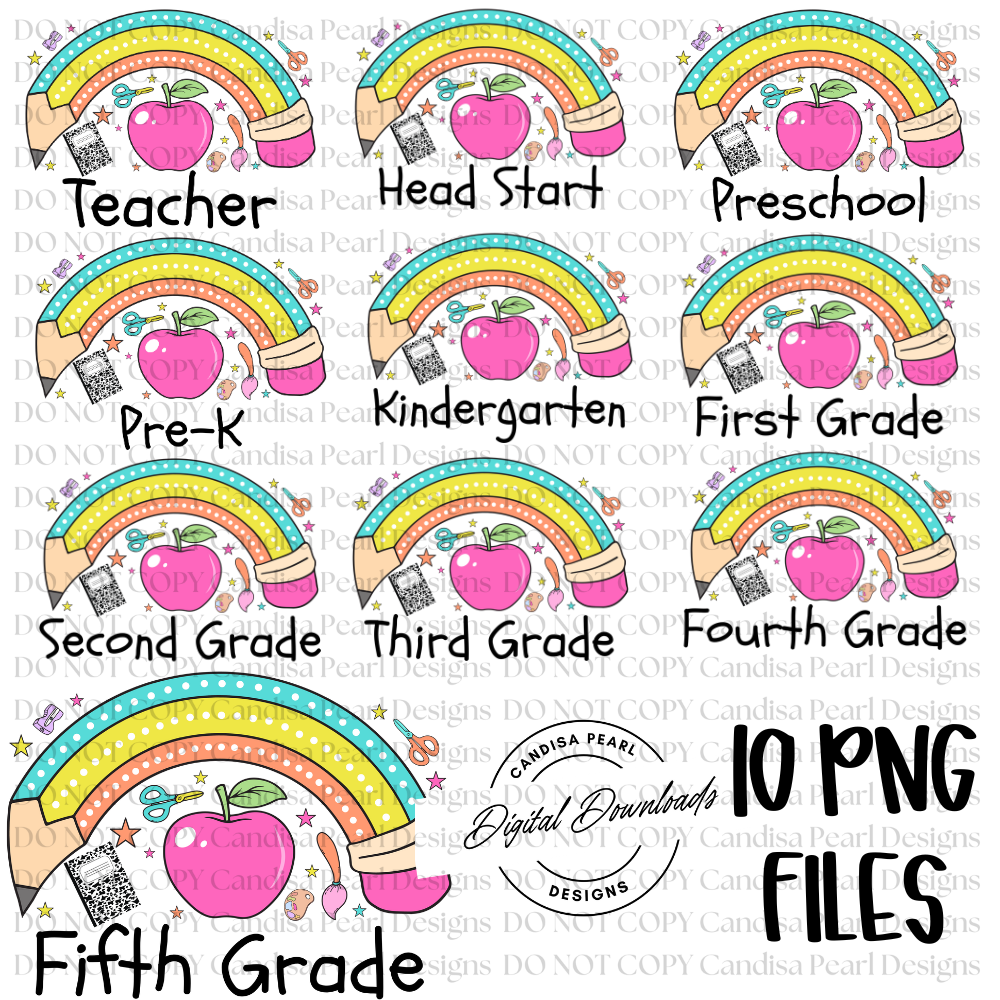 Rainbow Pencil Grades Bundle 10-PNG DIGITAL DOWNLOAD
